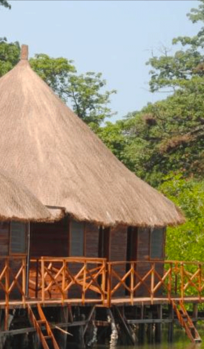 Due to the Lodge’s location in the middle of a mangrove forest, visitors can experience the exceptional flora and fauna of brackish wetlands. As the flood retreats the receding waterline exposes countless creatures such as crabs and mudskipper caught in the sludge of the river bed. In the evening apes and vultures inhabit the overwhelming Baobab trees, and after dusk great colonies of fruit bats can be seen swarming into the night.