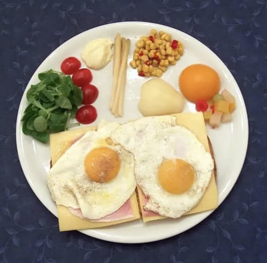 Eggs, Fruit juice, Coffee, Tea, Bread, etc.